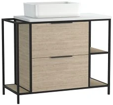 Тумба под раковину Cersanit Bosquet 100 63013 - это гармоничное сочетание реалистичной имитации дуба со стальным каркасом, выполненным в строгом чёрном цвете. Белая глянцевая столешница, изготовленная из МДФ-плиты, выглядит как стекло и служит основанием для белоснежных раковин Cersanit из коллекций CREA. Стильная контрастная композиция прекрасно подходит для помещений с повышенной влажностью и перепадами температур — все детали конструкции тщательно защищены от воздействия воды и пара. Раковина приобретается отдельно!