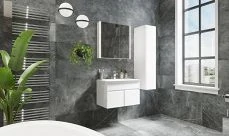 Конструкция тумбы удобно разделена на два отделения с ящиками. Оба ящика вместительные и способны уложить большое количество банных принадлежностей и полотенец. Утопленные внутрь фасада хромированные ручки обеспечивают легкое открывание и закрывание ящиков.