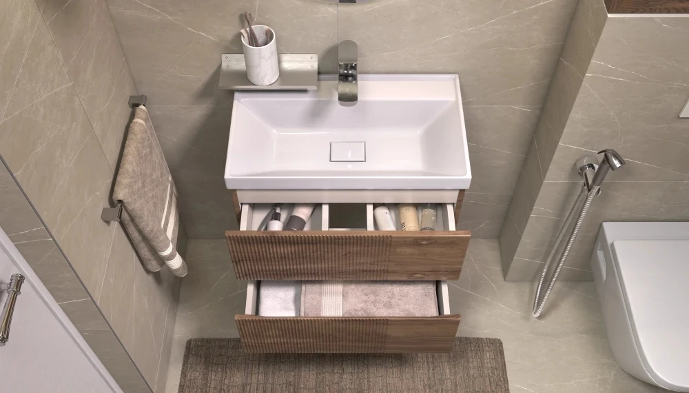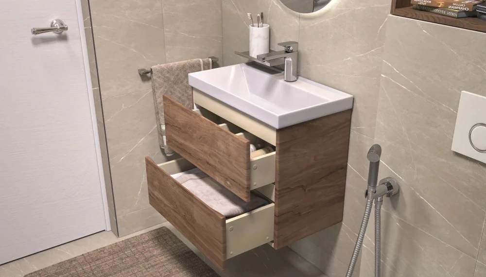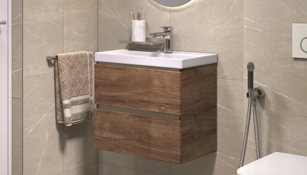 Доставка Тумба под раковину Velvex Mondi 600-0-2 (Madera Classica Slim) навесная акация темная