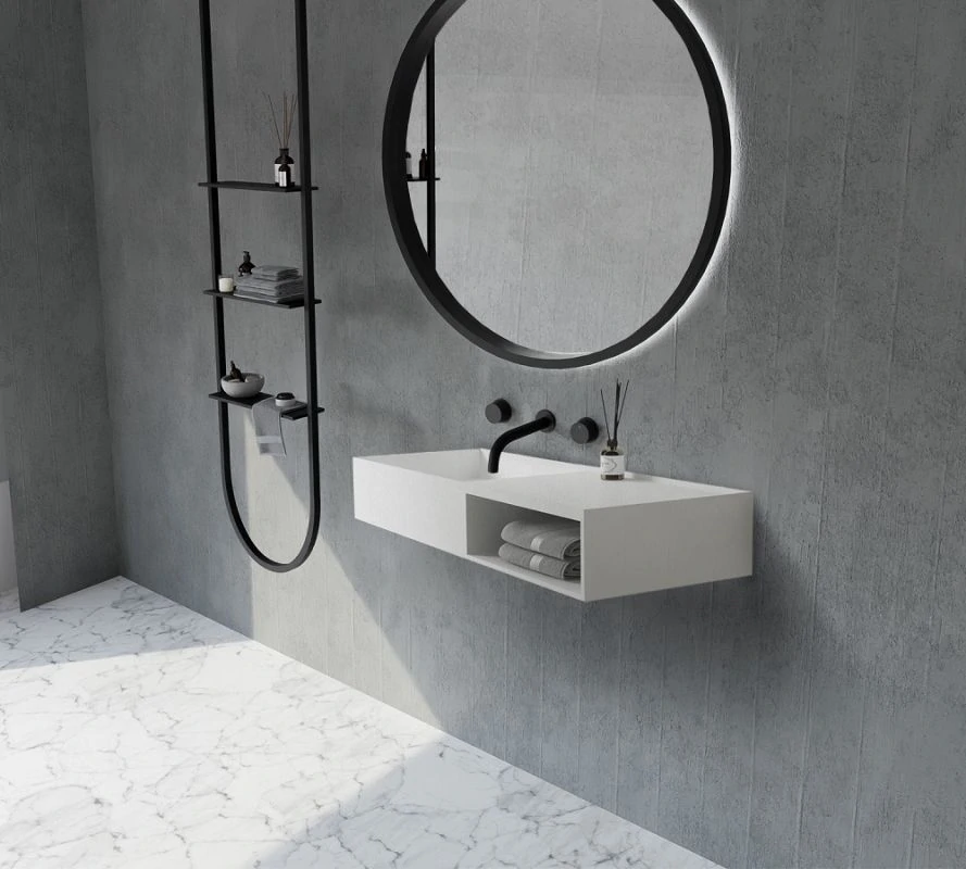 Доставка Тумба с раковиной ABBER Stein AS2649-0.8 подвесная, белая матовая