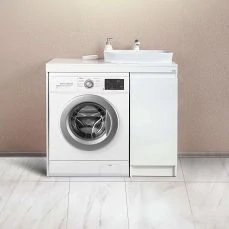 Тумба с раковиной Soft (размер 100) является одним из элементов дизайнерской коллекции мебели для ванных комнат. Столешница тумбы в ванную предусмотрена под установку стиральной машины.