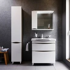 Впервые ультрамодная дизайнерская мебель в стиле Dynamic Organic стала представлена в доступном сегменте; Уникальная глубокая и удобная раковина со стилизованной губой - защищает от разбрызгивания воды; Утонченность в деталях: удобные интегрированные в фасад ручки идеально повторяют изгиб выступа раковины; Самое мягкое открытие и закрытие ящиков в классе: направляющие скрытого монтажа с системой мягкого закрывания soft close; Экологически чистые и удивительно долговечные полиакриловые эмали – специальная технология покраски в 7 слоев превосходит технологию нанесения автоэмали у ведущих немецких марок и обеспечивает насыщенный цвет в течение всего срока службы (от 10 лет).