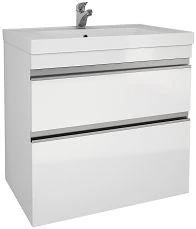 - Современный дизайн с интегрированными ручками из матового металла. Подойдет как для просторных домов, так и для городских квартир. Прямоугольные умывальники изготовлены с бортиком по всему периметру, что бывает так удобно при эксплуатации