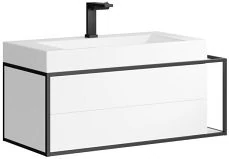 Подвесная тумба под раковину Aqwella Clarberg Logic 100 L LOG0110L с двумя ящиками и дополнительной консолью для полотенец справа. Главная особенность коллекции - это применение алюминиевого анодированного профиля в чёрном цвете.