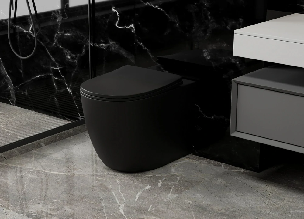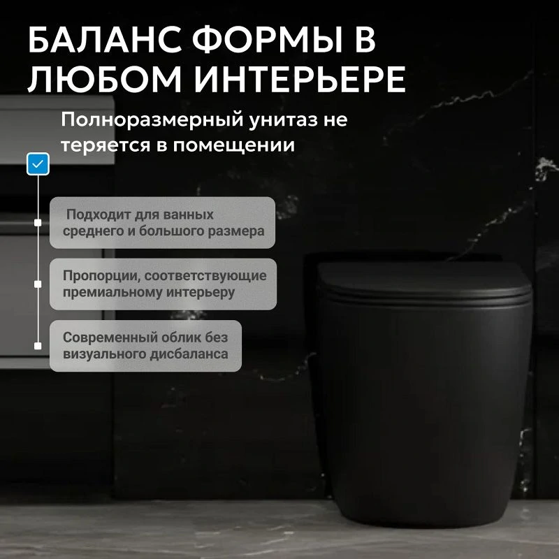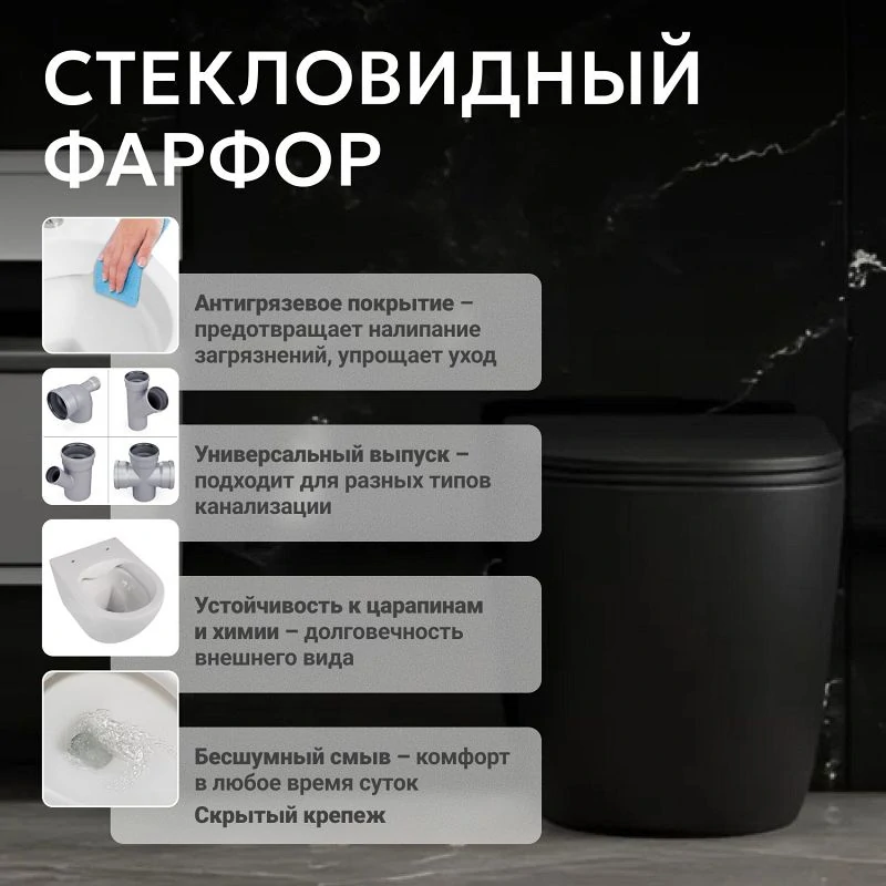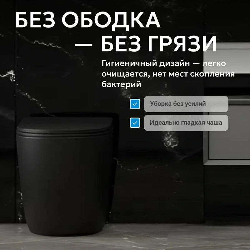 Отзывы Унитаз ABBER Bequem AC1111TMB приставной черный матовый, безободковый, смыв торнадо
