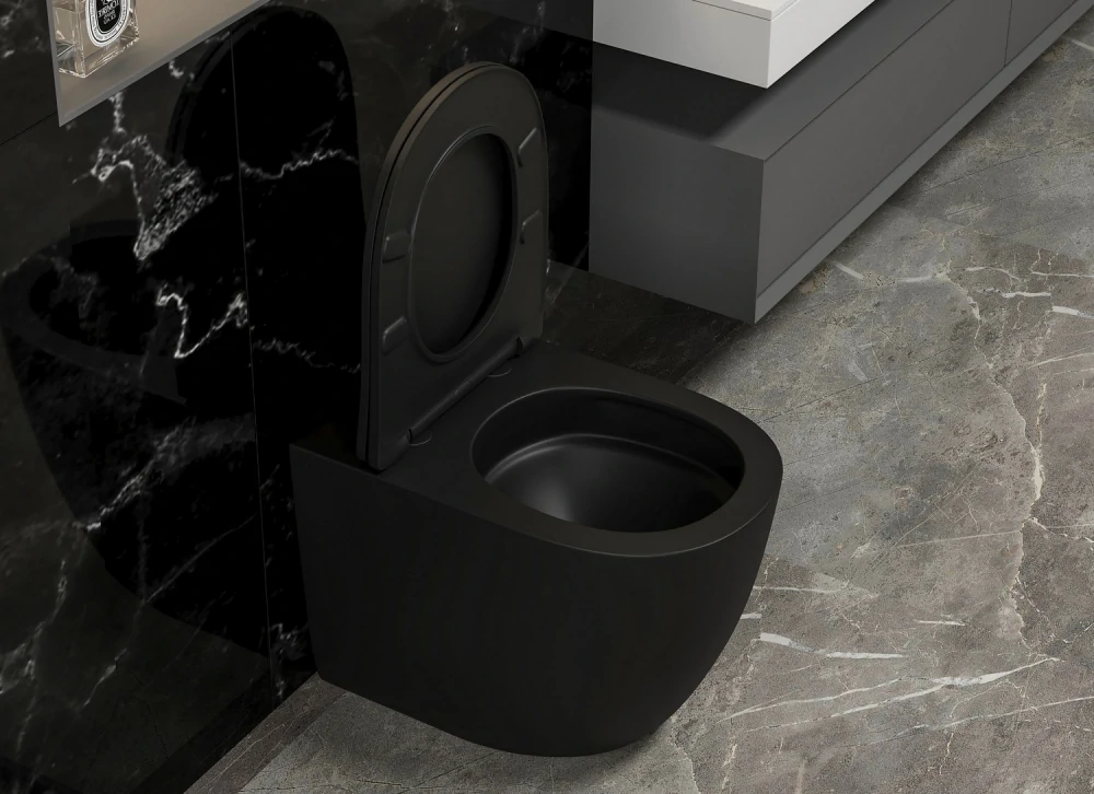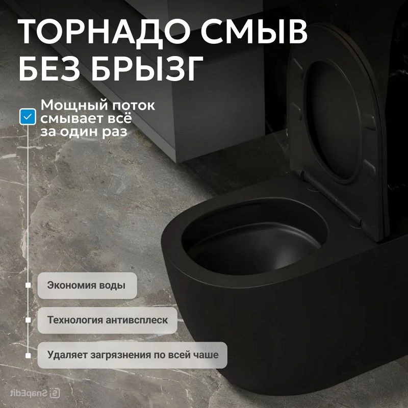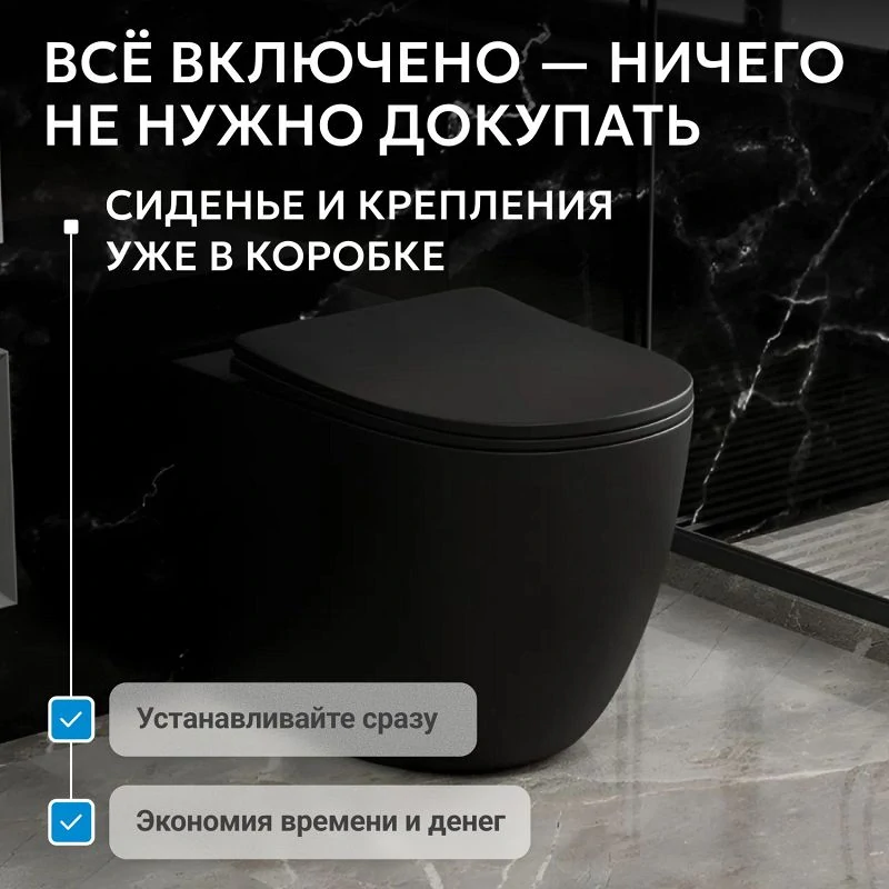 Доставка Унитаз ABBER Bequem AC1111TMB приставной черный матовый, безободковый, смыв торнадо