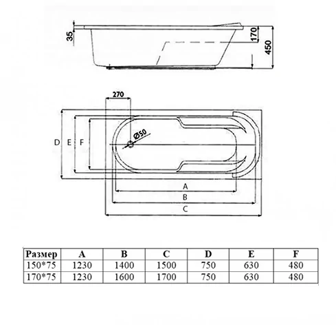 Торцевой SC-T(150-170)75 и фронтальный SC-F150 экран для ванны приобретается отдельно