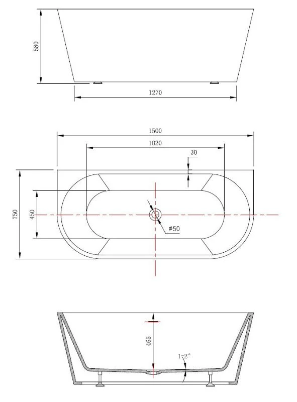 Ванна акриловая Vincea VBT-421-1500 150x75 щелевой перелив