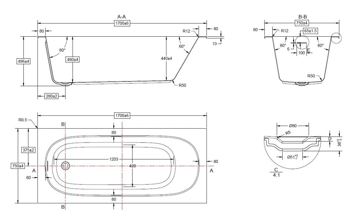 Ножки для ванны VBT-710-1700-LEG SET не входят в комплектацию – заказываются отдельно