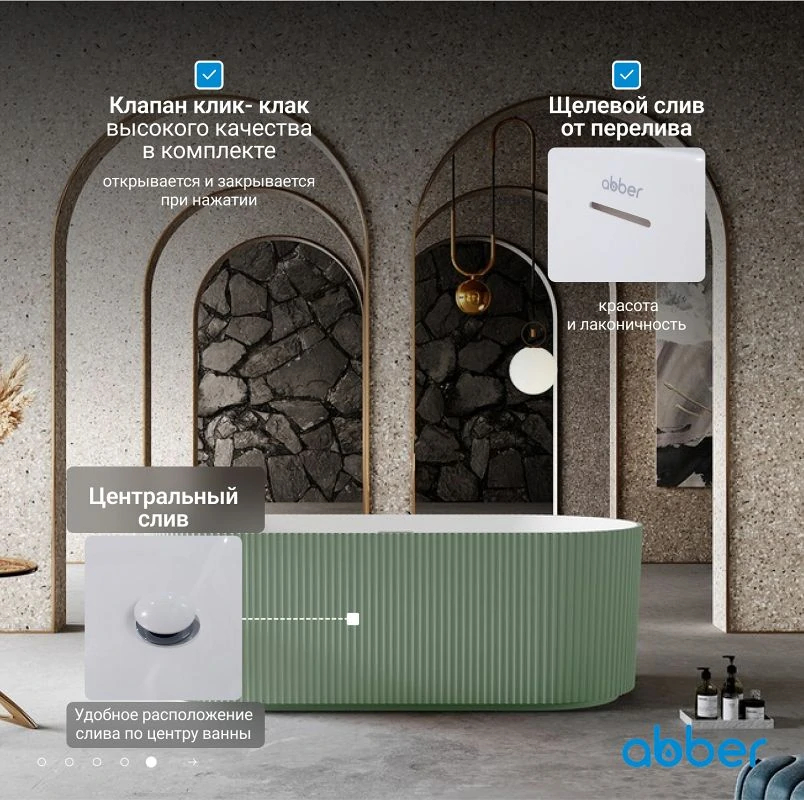 В наших магазинах вы можете купить ванна из искусственного камня abber stein as9601mcg зеленая матовая В нашем каталоге на сайте больше кол-во товаров Abber и комплектующих деталей. Мы находимся по адресам: Н.Новгород, ул.Кузбасская 17а. Н.Новгород, ул.Бринского д.6 Н.Новгород, Московское шоссе 343