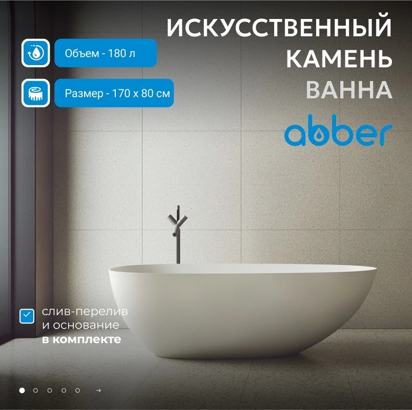 Отзывы Ванна из искусственного камня ABBER Stein AS9611-1.7 белая матовая