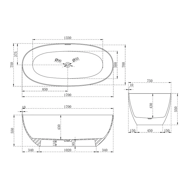 Отзывы Ванна из искусственного камня ABBER Stein AS9624-1.7 белая матовая