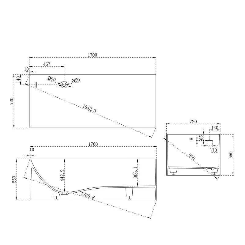 Доставка Ванна из искусственного камня ABBER Stein AS9640-1.7 белая матовая