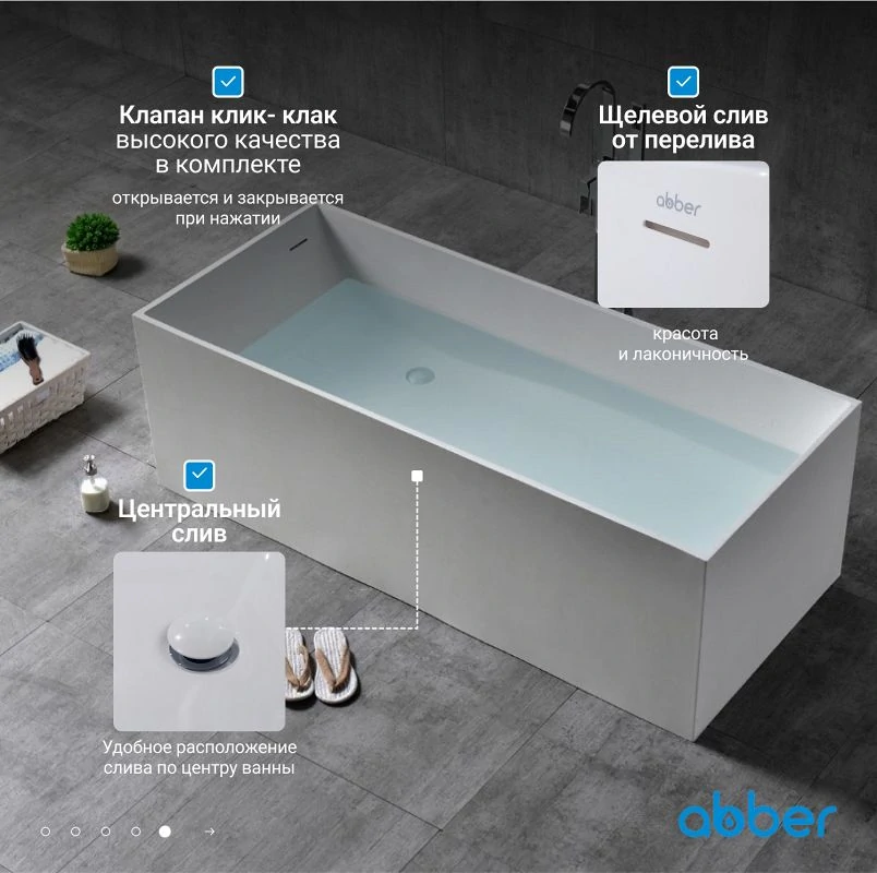 В наших магазинах вы можете купить ванна из искусственного камня abber stein as9642-1.8 белая матовая В нашем каталоге на сайте больше кол-во товаров Abber и комплектующих деталей. Мы находимся по адресам: Н.Новгород, ул.Кузбасская 17а. Н.Новгород, ул.Бринского д.6 Н.Новгород, Московское шоссе 343