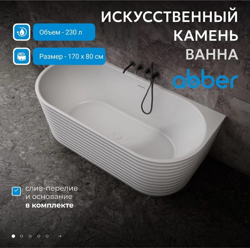 Отзывы Ванна из искусственного камня ABBER Stein AS9652 белая матовая