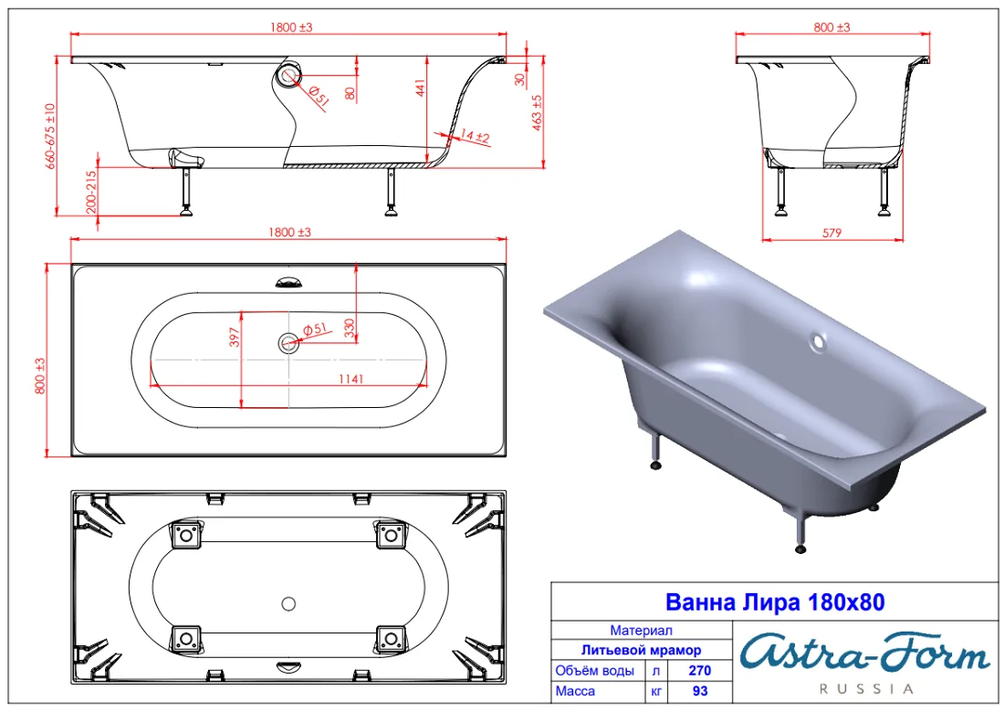 Отзывы Ванна из литьевого мрамора Astra-Form Лира 180х80