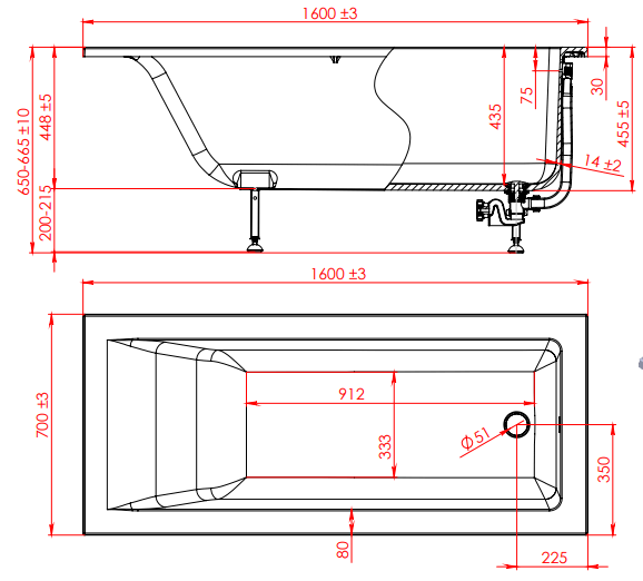 Установочные ножки входят в стоимость ванны.