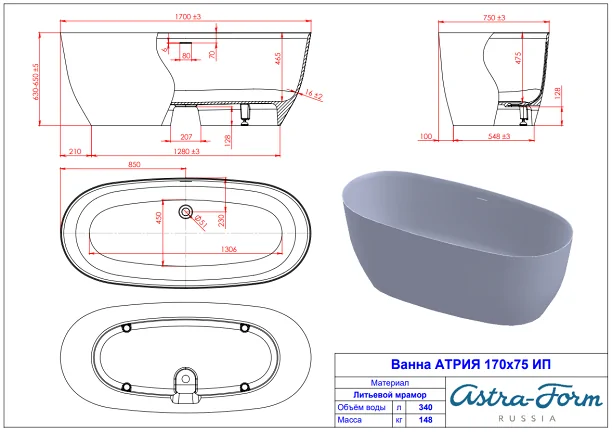 Модель овальной формы ALPEN Palermo 170 из литьевого мрамора стала настоящим произведением искусства, которое сможет прекрасно украсить любой интерьер. Ванна привлекает своей изящной формой, и, несомненно, превосходным качеством. Гарантия на ванну составляет 3 года.