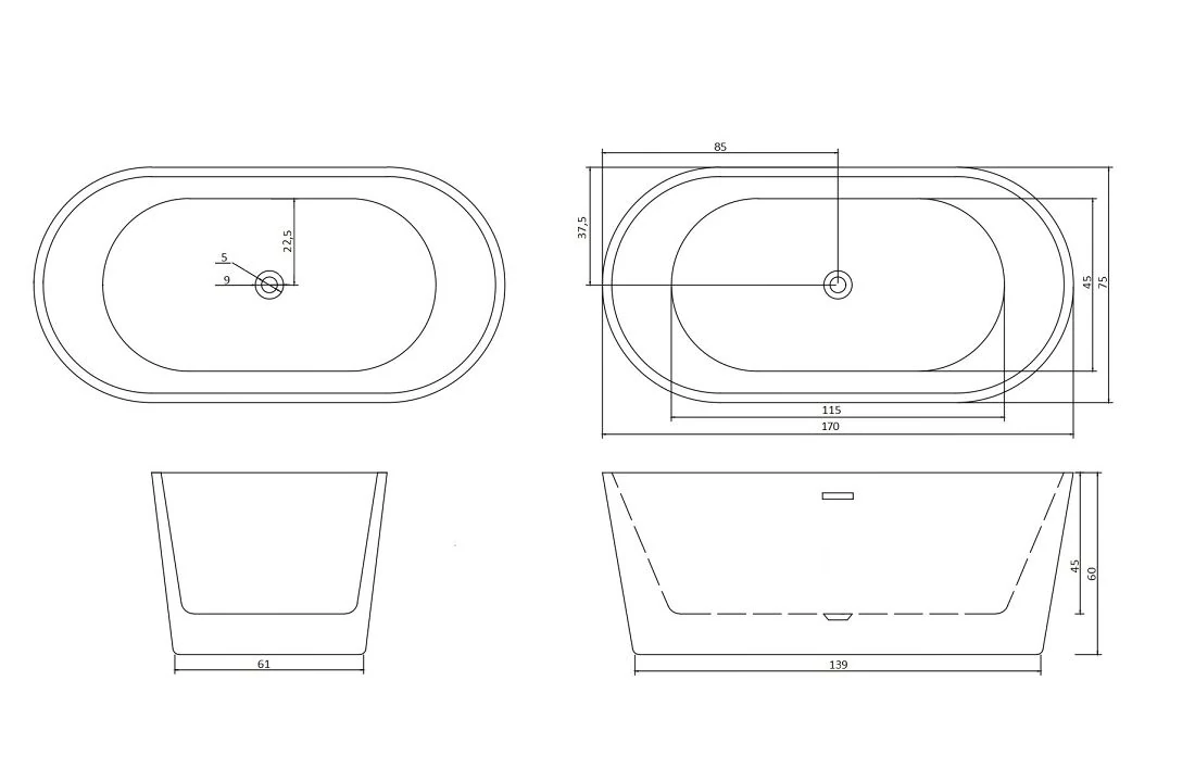 Отзывы Ванна RESIA170II акриловая отдельностоящая Ceruttispa (1700x750x600)