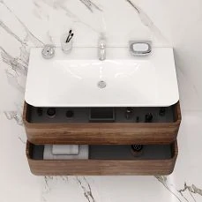 Стильная практичная модель зеркального шкафа Беверли 100 от AQUATON отличается простым и лаконичным дизайном, который придется по вкусу ценителям комфортного минимализма. Три отсека с регулируемыми по высоте стеклянными полками позволят хранить все необходимое под рукой. Корпус выполнен из высококачественной МДФ и покрыт белоснежной полиэфирной краской ультрафиолетового отверждения с высокой степенью глянца, а фасад - из влагостойкой ЛДСП с зеркальной отделкой. Дверцы оснащены системой плавного закрывания, которая обеспечивает удобство при эксплуатации. Данная модель не имеет лицевой фурнитуры и идеально сочетается с тумбой под раковину AQUATON Беверли 100 в белом цвете.
