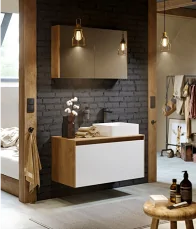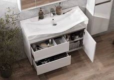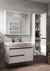 Зеркальный шкаф Флай 100 от AQUATON выполнен в современном стиле и подойдет владельцам просторных ванных. Корпус из влагостойкой ламинированной плиты в трендовой отделке дуб крафт оценят приверженцы лаконичного и элегантного дизайна. Фасад окрашен в белоснежный глянцевый цвет полиэфирной краской ультрафиолетового отверждения, которая придает изделию привлекательный внешний вид, а также износостойкость и долговечность. Петли снабжены доводчиком и обеспечивают плавное и практически бесшумное закрывание. Шкаф оборудован двумя удобными полочками из влагостойкой ЛДСП. Модель прекрасно сочетается с тумбой под раковину AQUAON Флай 100 в соответствующей отделке.