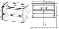 - Конструкция: шкаф слева, зеркало справа, открытая полка снизу