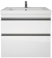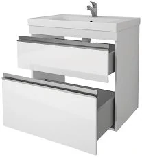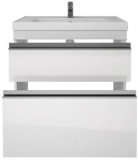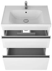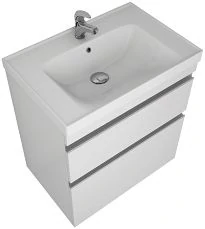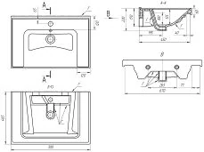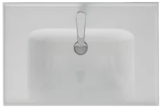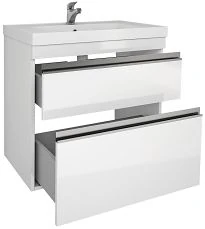- Система хранения: зеркальная дверка, за ней две стеклянный полочки, две открытые полки сбоку.
