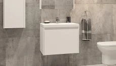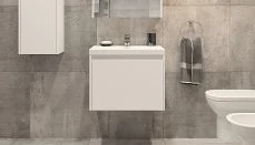 - Зеркальный шкаф Флай 60 см отражает современные тенденции в дизайне мебели для ванных комнат: минимализм с простыми и понятными формами, цвета дуба с текстурой, отсутствие лишних деталей.