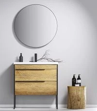 Открытые полки обеспечивают доступ к аксессуарам, а пространство за распашной зеркальной дверцей с механизмом плавного закрывания, разделенное полочкой, позволит хранить бытовые принадлежности.