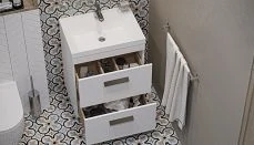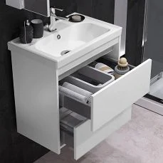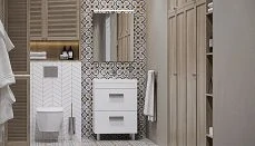 Внутри зеркало-шкафа находятся полки, которые дают возможность разместить все необходимые вещи так, чтобы они были всегда под рукой и в то же время не засоряли пространство в ванной комнате.