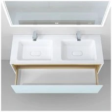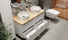 - Фасад и корпус шкафа выполнены из МДФ/ЛДСП. Материал покрыт пленкой высокого качества. Безупречная фрезеровка фасада и нанесение пленки гарантирует высокую влагостойкость и прочность.