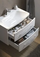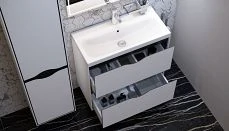 - Фасад и корпус шкафа выполнены из МДФ/ЛДСП. Материал покрыт пленкой высокого качества. Безупречная фрезеровка фасада и нанесение пленки гарантирует высокую влагостойкость и прочность.