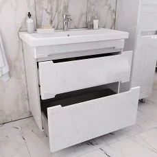 - Фасад и корпус шкафа выполнены из МДФ/ЛДСП. Материал покрыт пленкой высокого качества. Безупречная фрезеровка фасада и нанесение пленки гарантирует высокую влагостойкость и прочность.