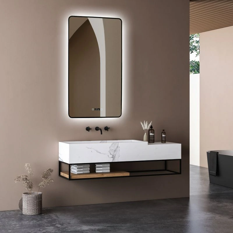 Доставка Зеркало ABBER See AG6114SWHB с подсветкой, сенсорный выключатель, диммер, часы, подогрев, черный
