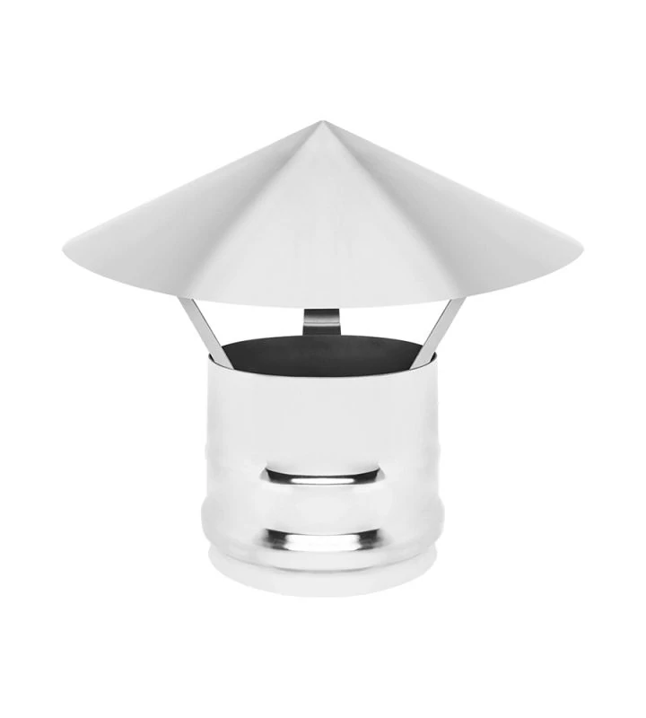 Зонт одноконтурного дымохода применяется в качестве завершающей части конструкции. Функциональное назначение: защита дымохода от попадания атмосферных осадков. ООО «ПТК «Везувий» производит зонты дымохода следующих диаметров: 100, 115, 120, 130, 150, 180, 200.