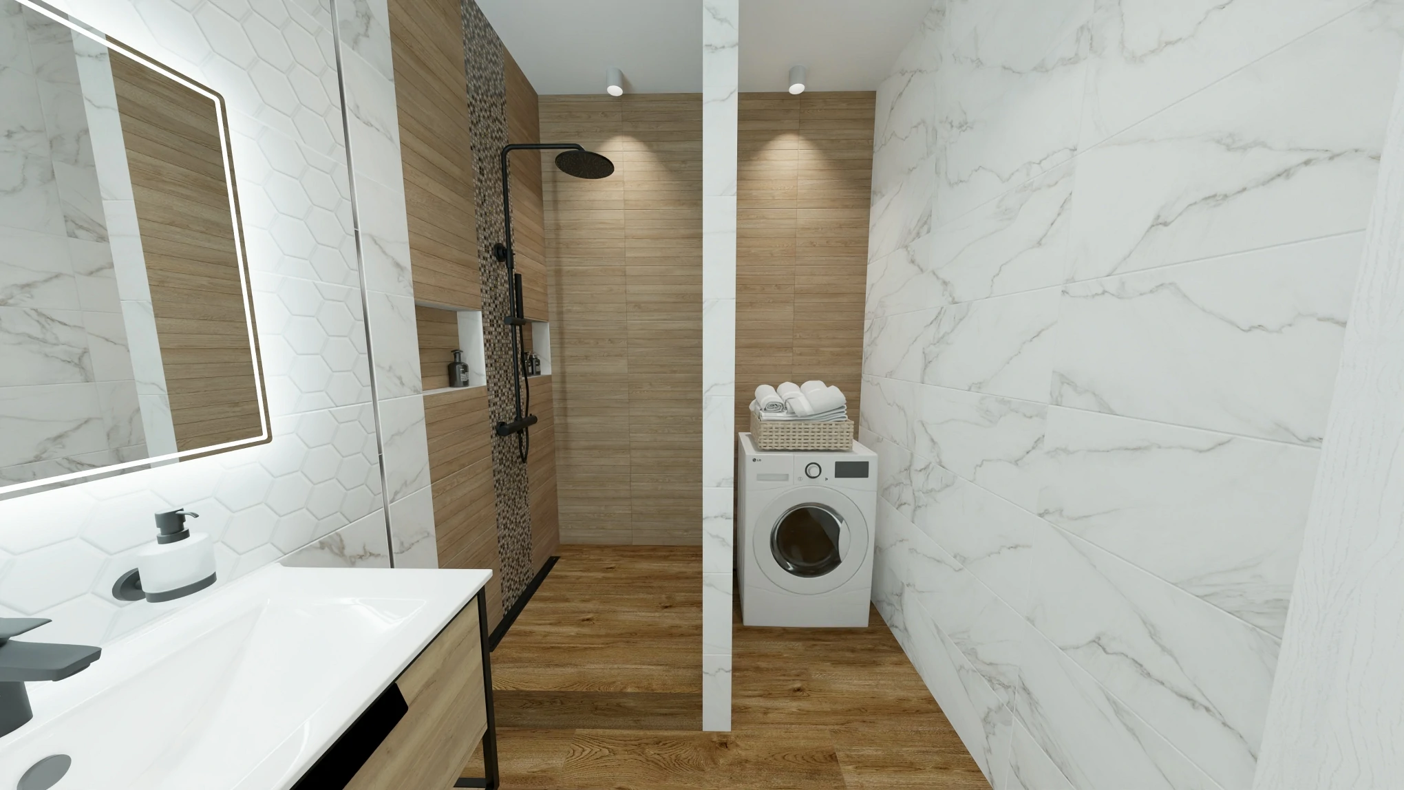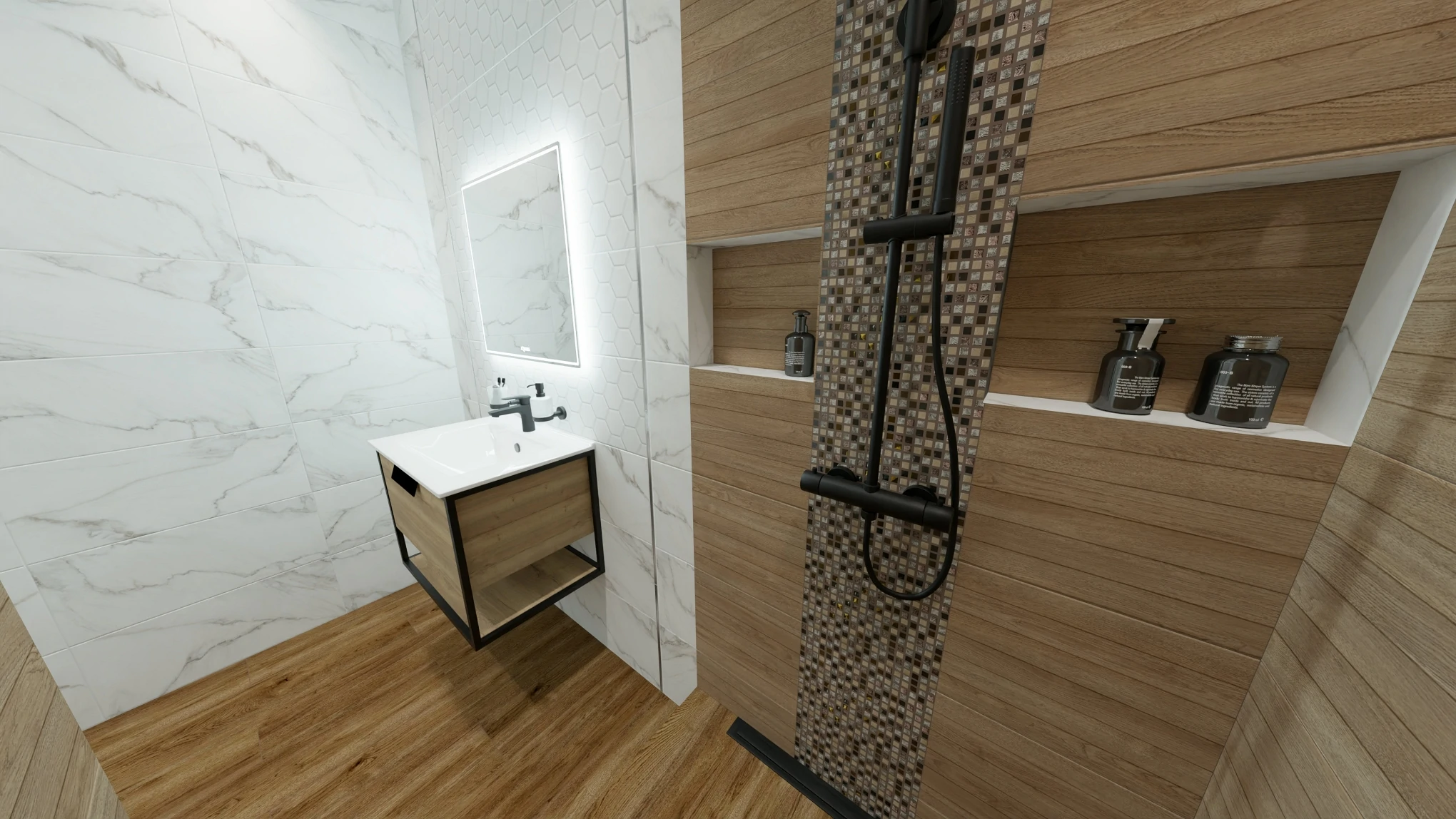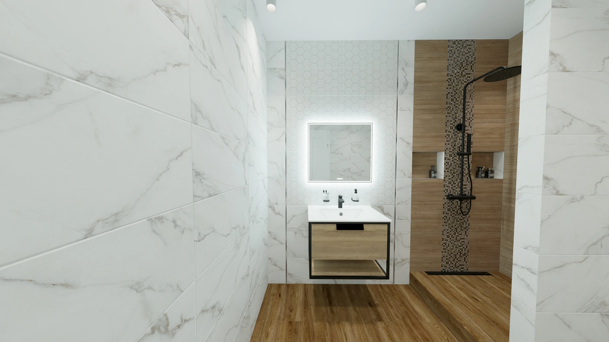 Матовая коллекция Aurea — это классическая текстура мрамора в сочетании с деревом.