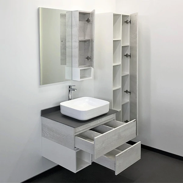 Для полноценного облика ванной комнаты дополните тумбу зеркалом или аксессуарами для ванной. Если нужен универсальный комплект, обратите внимание на нашу категорию комплекты мебели для ванной.