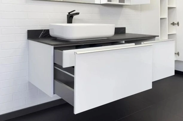 - Подвесные тумбы — визуально расширяют пространство и облегчают уборку;